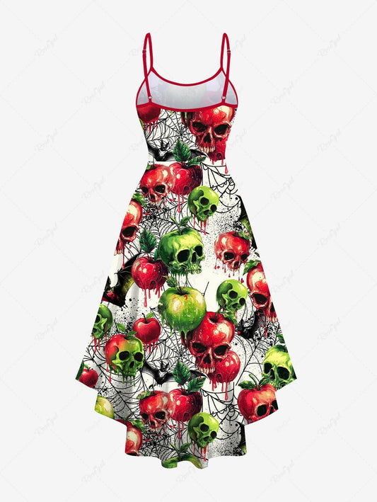 Plus Size Halloween Apples Skulls Spider Web Bat Print High Low Cami Dress