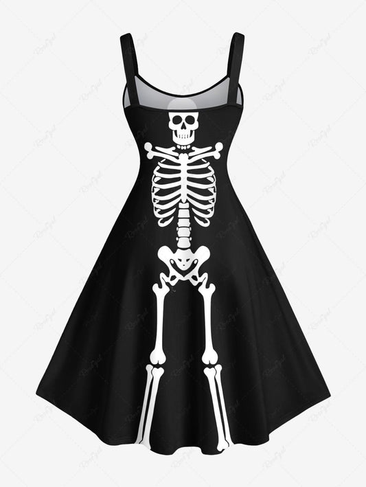 Plus Size Halloween Skull Skeleton Print Tank Dress