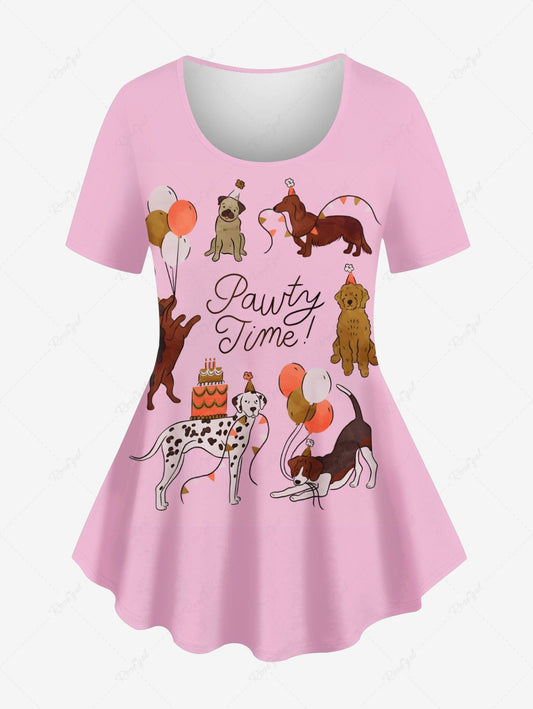 Plus Size Dog Birthday Cake Balloons Lights Printed T-shirt