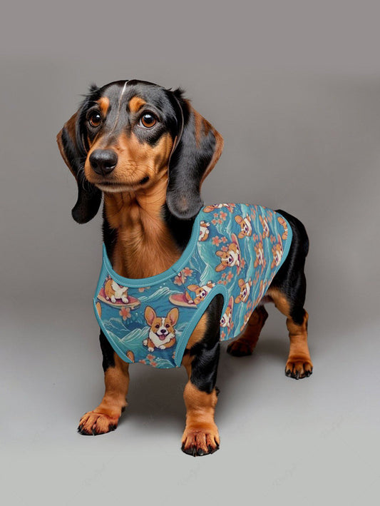 Dogs Sea Waves Flowers Print Tank Top and Shirt Dog and Owner Matching Outfits