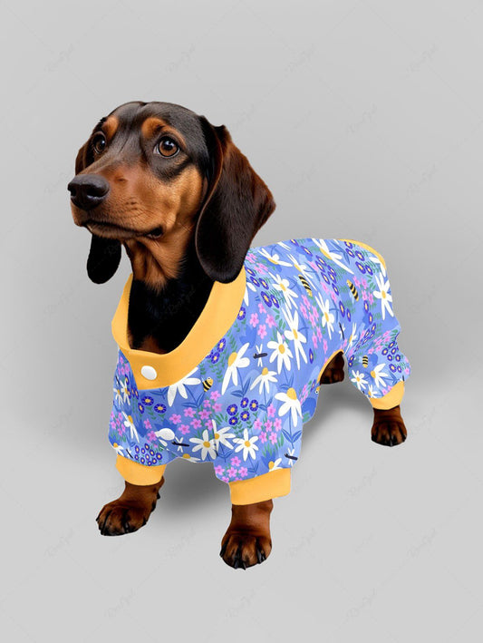 Colorful Flower Bee Print Pajama Pants Dog And Owner Matching Outfits