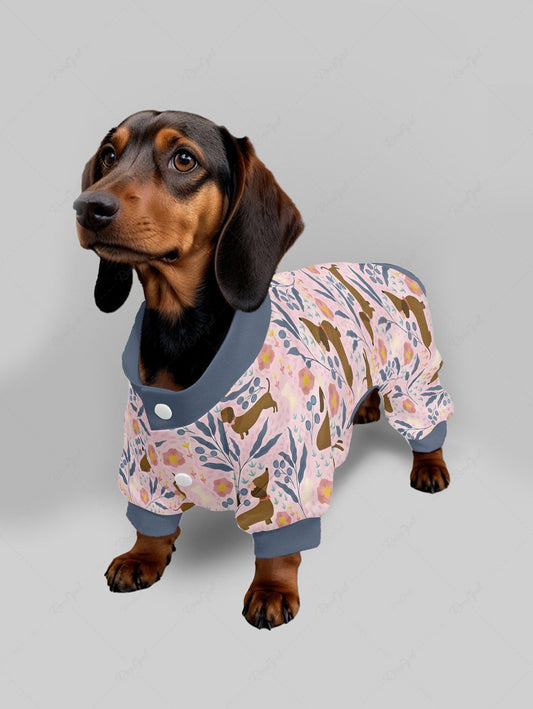 Puppy Floral Leaf Branch Print Pants Pajama Dog And Owner Matching Outfits