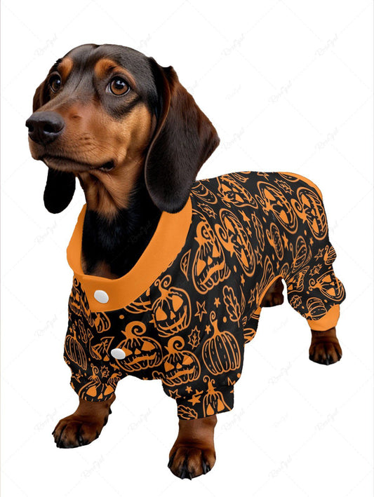 Halloween Pumpkin Stars Leaf Printed Pajama and Wide Leg Pants Dog and Owner Matching Outfits