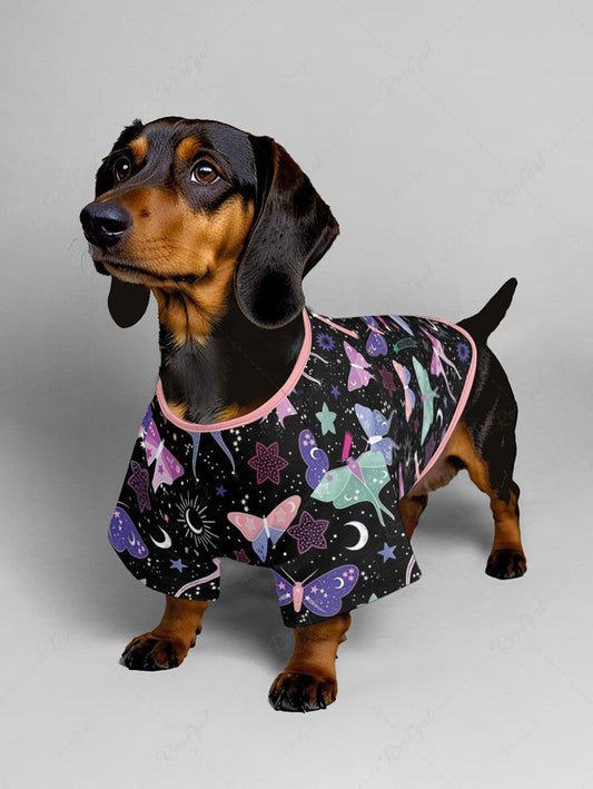 Colorful Butterfly Sun Moon Stars Galaxy Printed T-shirt Pants Dog And Owner Matching Outfits