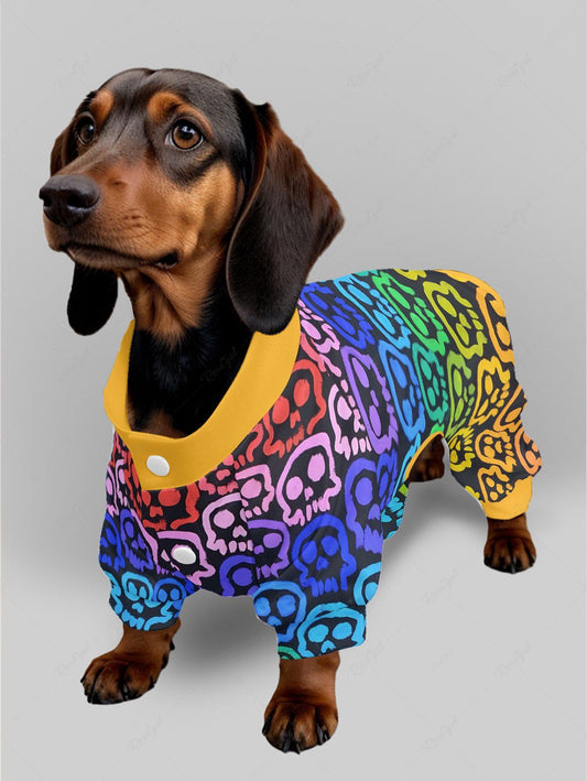 Colorful Ombre Skull Printed Halloween Pajama Dog And Owner Matching Outfits