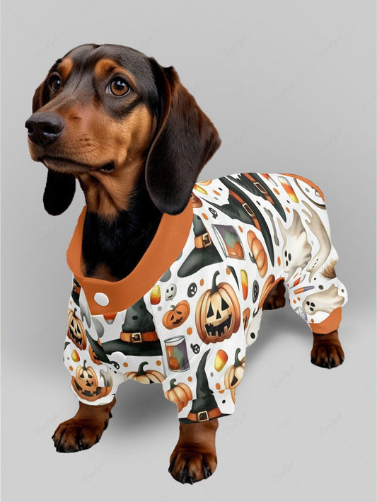Halloween Pumpkin Hat Ghost Print Pajama and Wide Leg Pants Dog and Owner Matching Outfits
