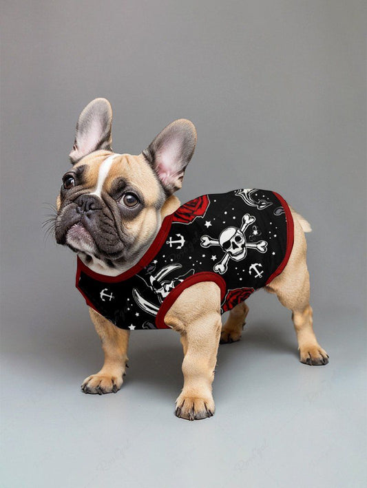 Skull Rose Flower Star Anchor Printed Tank Top and Wide Leg Pants Dog and Owner Matching Outfits