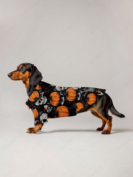 Halloween Costume Pumpkin Skulls Bat Spider Web Printed Dog and Owner Matching Outfits