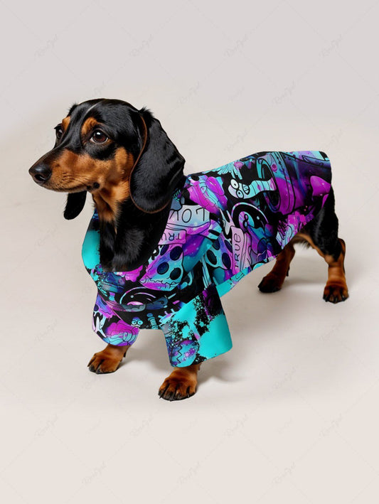 Skull Bird Graffiti Printed Shirt Dress Dog And Owner Matching Outfits
