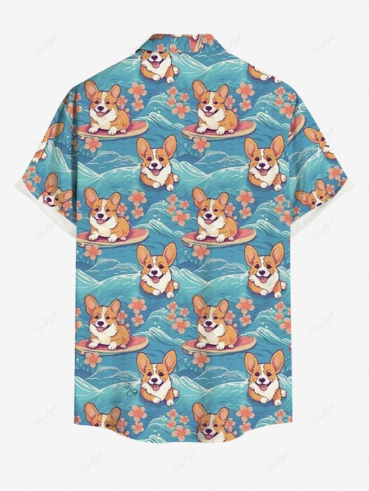 Plus Size Dogs Sea Waves Flowers Printed Buttons Pocket Hawaii Shirt For Men
