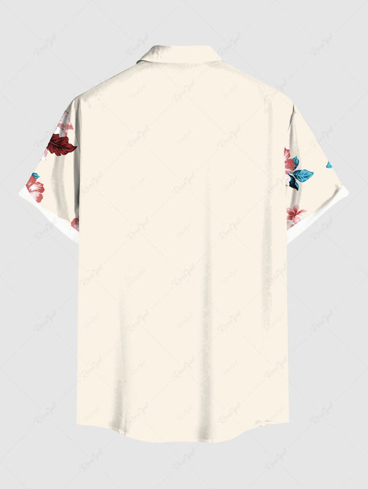 Plus Size Patriotic American Flag Floral Printed Hawaii Button Pocket Shirt For Men