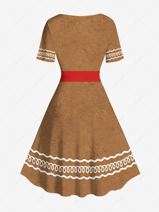 Plus Size Christmas Gingerbread Candy Heart Print Vintage Dress