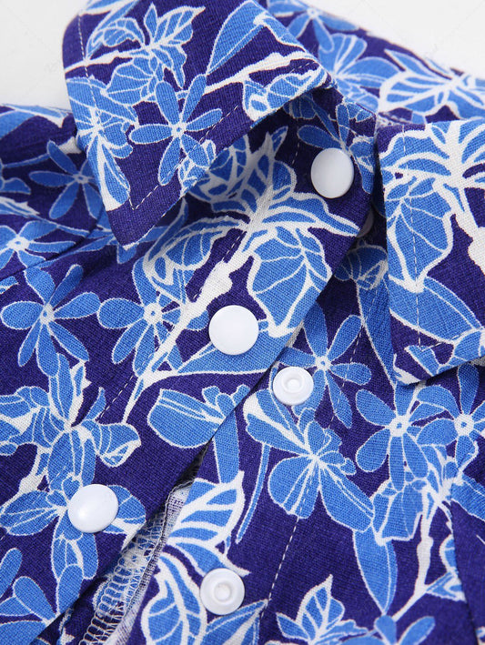 Pet's Turn-down Collar Flower Leaf Printed Hawaii Button Shirt
