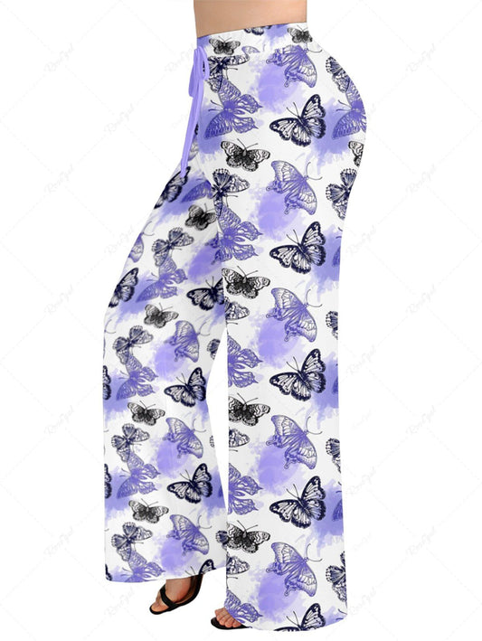 Plus Size Ombre Butterfly Printd Drawstring Wide Leg Pants