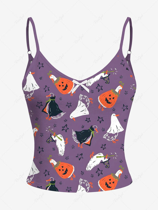 Pumpkin Wizard Duck Stars Print Halloween Cami Top and Drawstring Shorts Pajama Set
