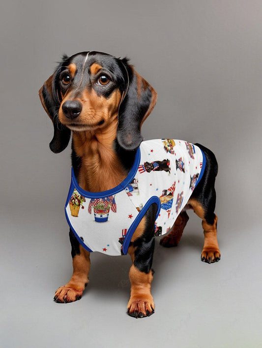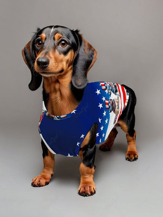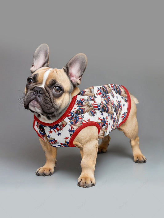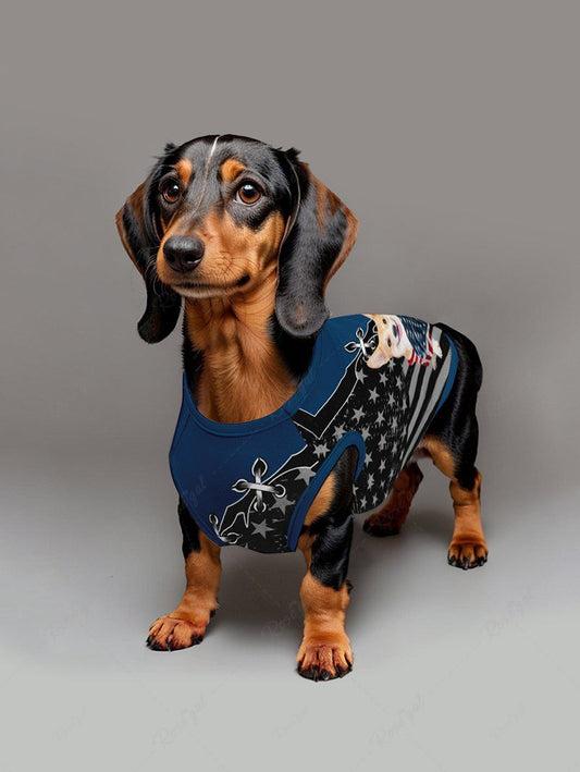 Patriotic American Flag Dogs Print Tank Top and Shirt Dog and Owner Matching Outfits