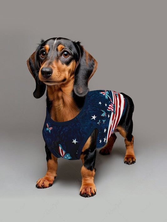 Patriotic American Flag Butterfly Print Tank Top and Shirts Dog and Owner Matching Outfits