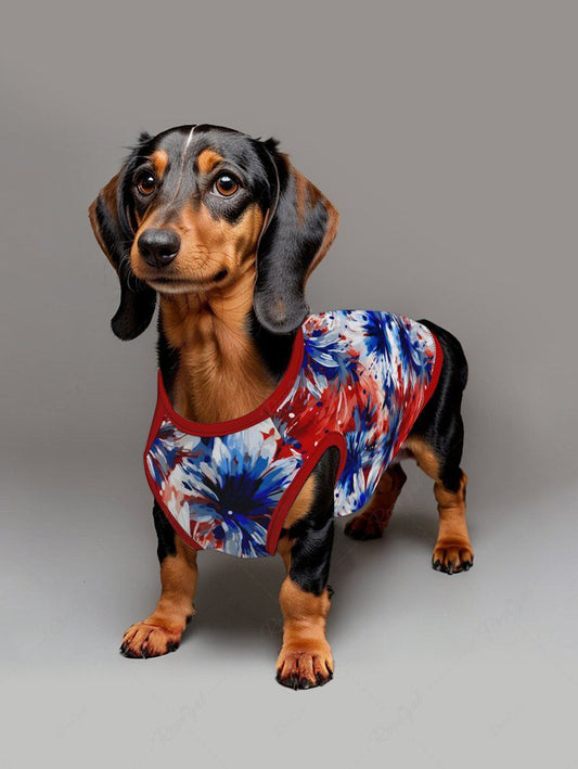 Daisy Flower Patriotic American Flag Colors Oil Painting Print Tank Top and Shirt Dog and Owner Matching Outfits