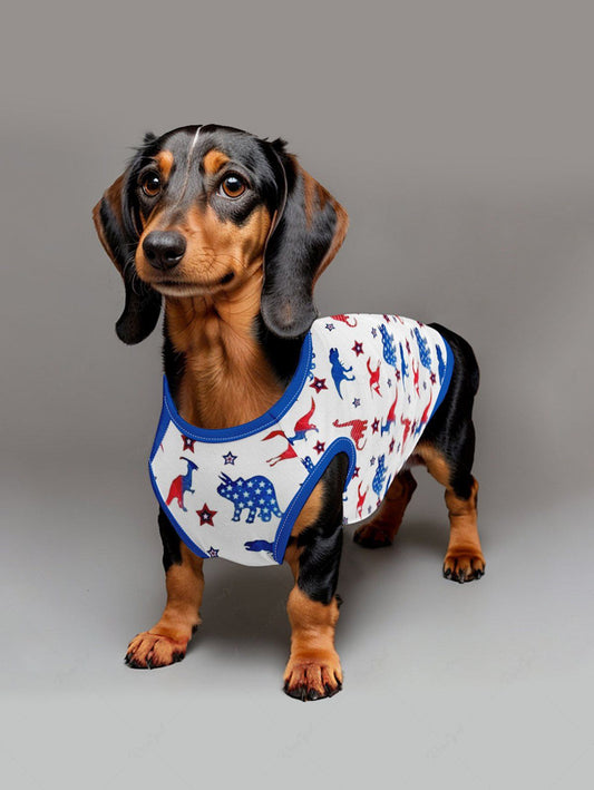 Patriotic American Flag Dinosaur Star Print Tank Top and Shirt Dog and Owner Matching Outfits