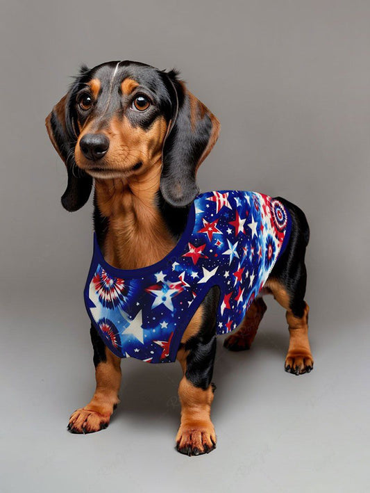 Tie Dye Spiral Galaxy Patriotic American Flag Printed Shirt Tank Top Dog And Owner Matching Outfits