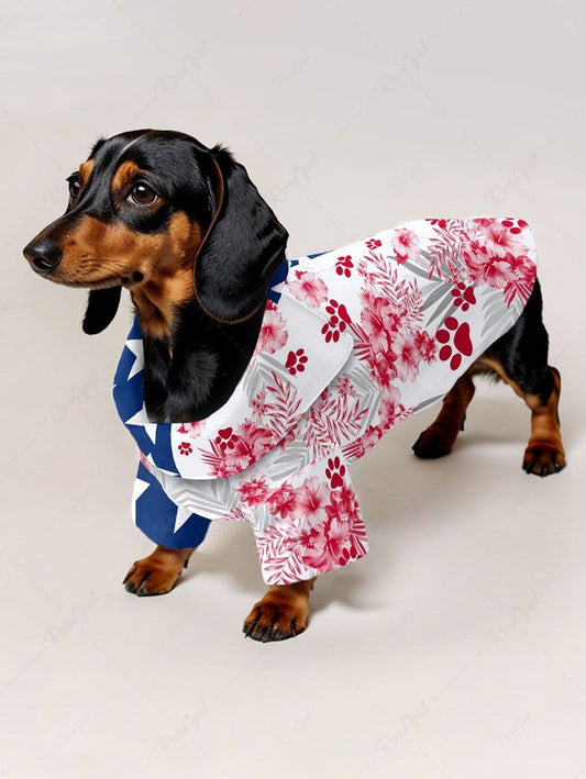 Patriotic American Flag Dog Hibiscus Floral Tropical Leaves Paw Print Shirt Dog And Owner Matching Outfits