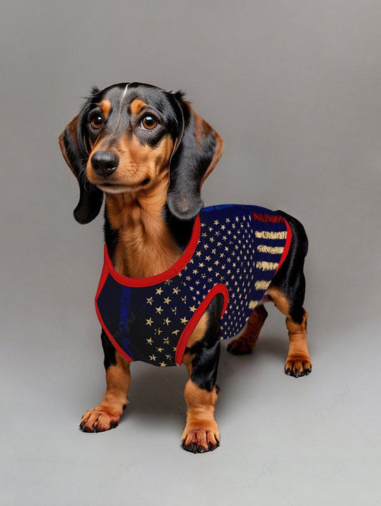 Patriotic American Flag Curve Printed Shirt Tank Top Dog And Owner Matching Outfits