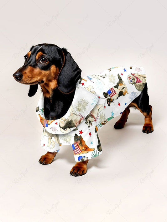 Colorful Puppy Patriotic American Flag Fireworks Print Shirt Dog And Owner Matching Outfits