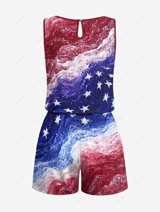 Plus Size Patriotic American Flag Painting Print Drawstring Pocket Romper