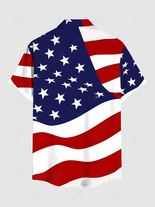 Plus Size Patriotic American Flag Print Buttons Pocket Shirt For Men