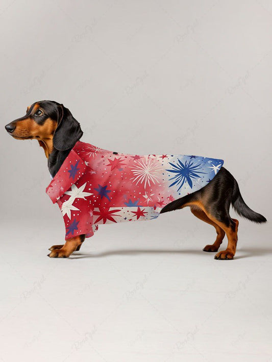 Pet's Tie Dye Ombre Patriotic American Flag Fireworks Print Button Shirt