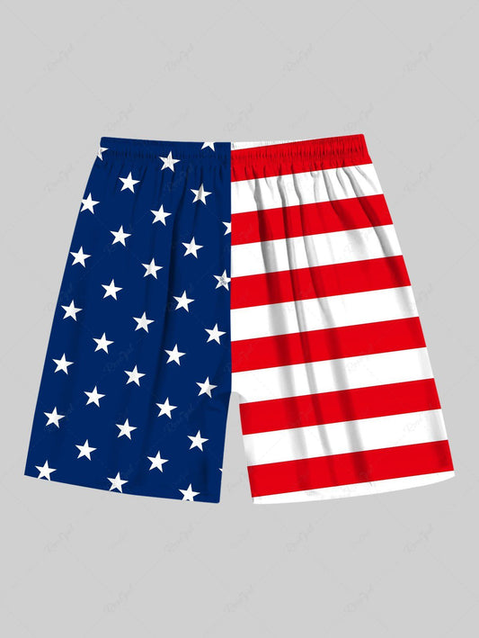 Plus Size Patriotic American Flag Print Beach Shorts For Men