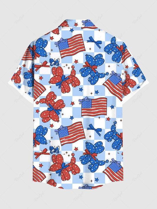 Plus Size Patriotic American Flag Dog Balloon Geometric Plaid Butterfly Print Button Pocket Shirt For Men