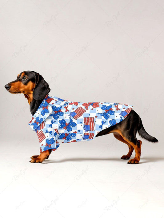 Pet's Patriotic American Flag Dog Balloon Geometric Plaid Butterfly Print Button Shirt