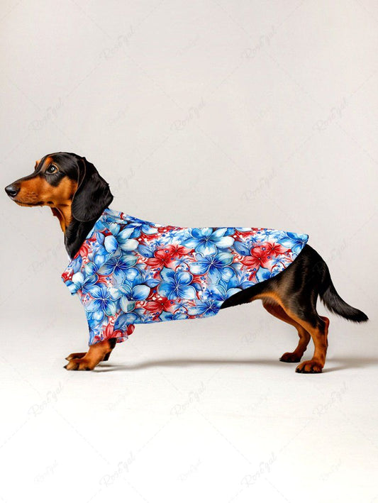 Pet's Patriotic American Flag Floral Print Hawaii Button Shirt