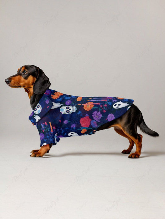 Pet's Skull Flower Ghost Candle Print Halloween Button Shirt