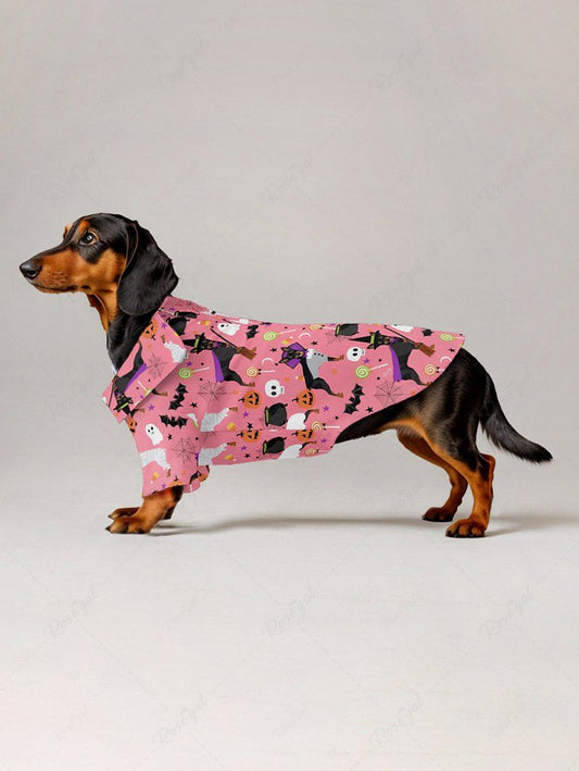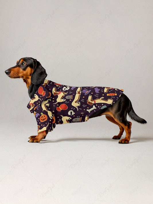 Pet's Dog Skull Pumpkin Bat Candy Print Halloween Button Shirt