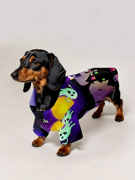 Pet's Pumpkin Castle Tree Bat Ghost Moon Ombre Galaxy Printed Halloween Button Shirt