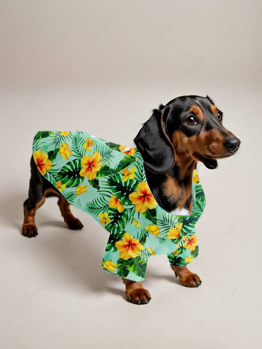 Pet's Tropical Leaf Hibiscus Flower Printed Hawaii Shirt