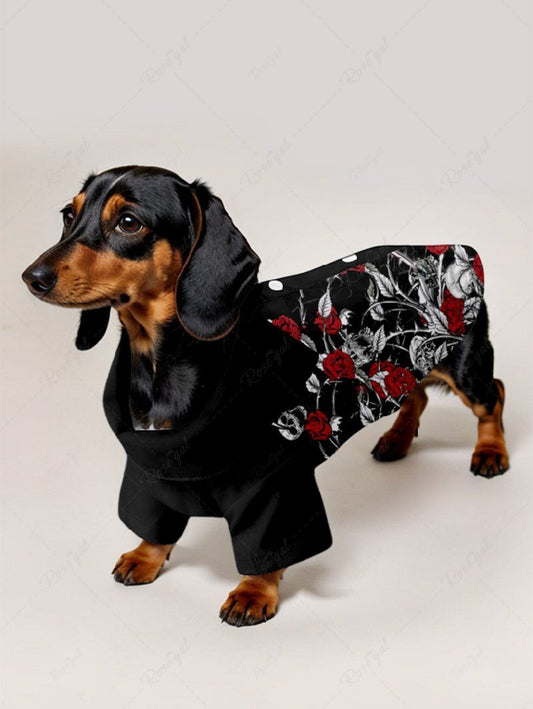 Pet's Rose Flower Leaf Vine Skulls Printed Halloween Button Shirt