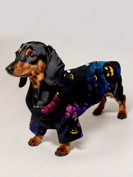 Pet's Pumpkin Bat Printed Halloween Ombre Button Shirt