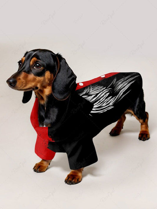 Pet's Feather Wing Two Tone Colorblock Printed Halloween Button Shirt