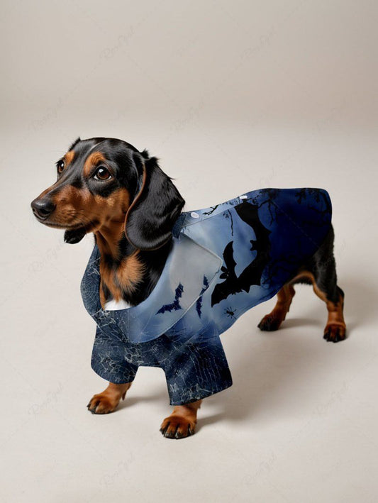Pet's Ombre Midnight Galaxy Bat Moon Spider Web Printed Halloween Button Shirt