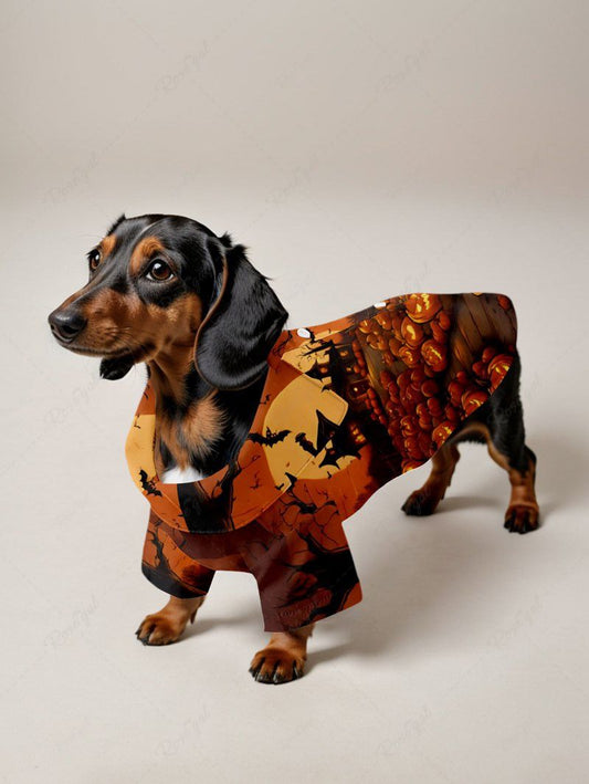 Pet's Pumpkin Castle Bat Moon Tree Printed Halloween Button Shirt