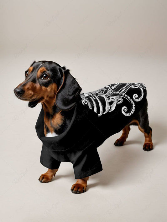 Pet's Skeleton Octopus Printed Halloween Button Shirt