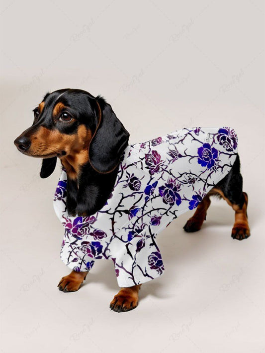 Pet's Glitter Ombre Rose Flower Vine Printed Halloween Button Shirt