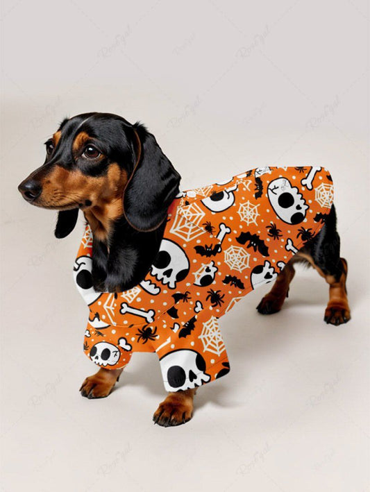Pet's Halloween Spider Web Skulls Printed Shirt