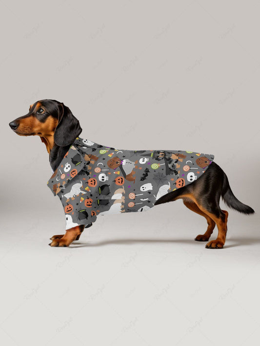 Pet's Halloween Costume Dogs Ghost Skulls Candy Pumpkin Print Shirt