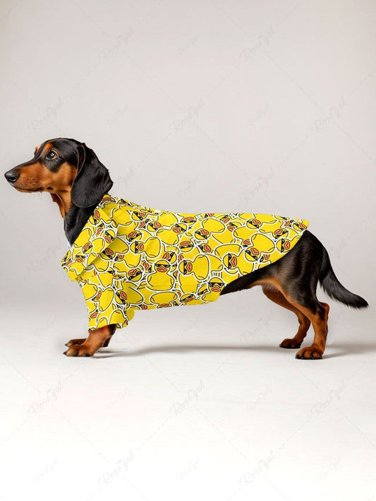 Pet's Sunflower Leaf Print Hawaii Button Shirt