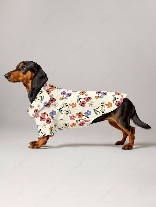 Pet's Cute Dog Sun Beach Print Hawaii Button Shirt