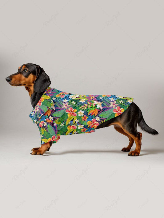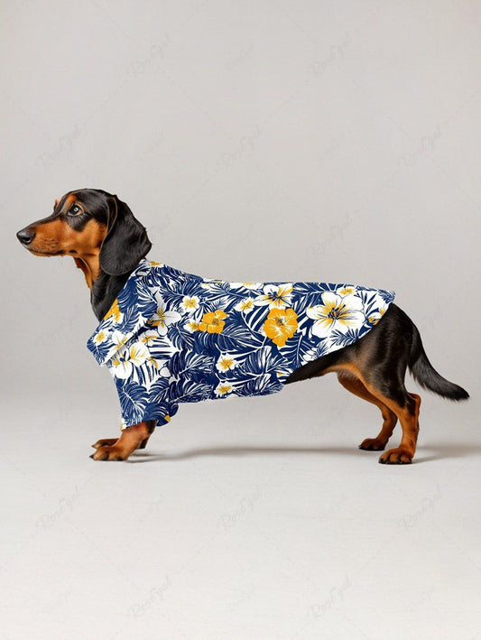 Pet's Tropical Leaves Hibiscus Floral Dog Printed Hawaii Button Shirt